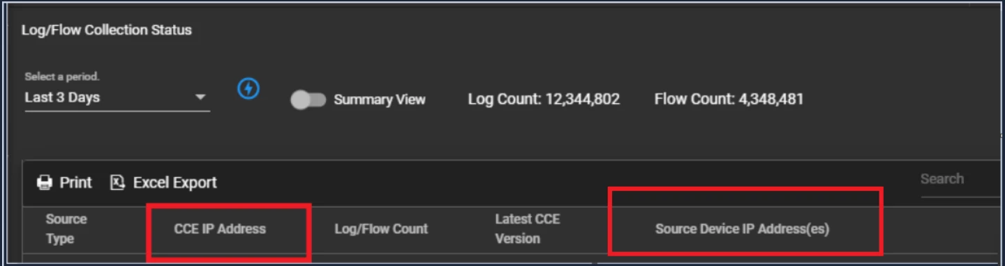- Inside Source Device IP, the IP address of the device will be shown, including the number of logs sent to the ADR servers.
