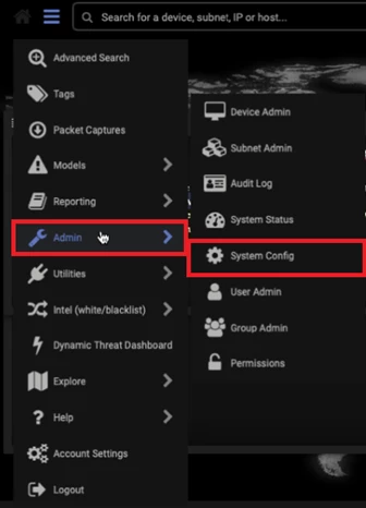 - Log in to the UI with administrative rights and navigate to System >> Log/Flow Collection Status.