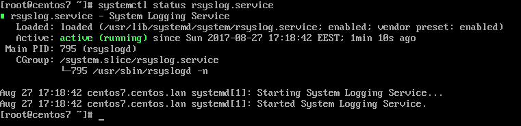 After you’ve edited the Rsyslog configuration file with your own settings as explained above, restart the Rsyslog daemon in order to apply changes by issuing the following command: